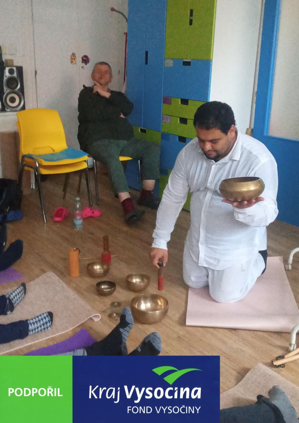 Díky štědré podpoře Kraj Vysočina získané prostřednictvím Fondu Vysočiny v rámci dotačního programu „Celoroční aktivity handicapovaných 2025“ probíhá v obou našich stacionářích pravidelná jóga a gongová lázeň. Všichni klienti si tyto chvíle klidu nesmírně užívají!